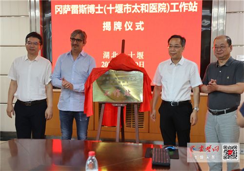 随后冈萨雷斯、彭力、唐以军和太和医院胸心大血管外科主任张军共同为冈萨雷斯博士(十堰市太和医院)工作站揭牌。