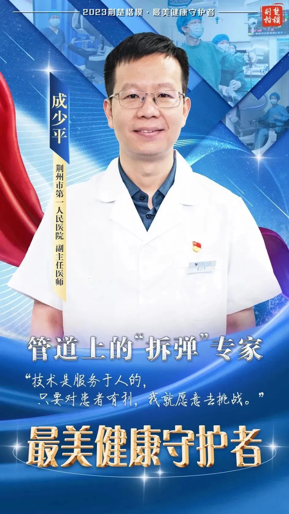 8月10日,湖北省委宣传部、湖北省卫生健康委举办2023“荆楚楷模•最美健康守护者”致敬礼,向来自全省卫生健康系统的10名优秀医务工作者献上敬意。荆州一医临床五党支部书记、泌尿外科二病区主任、医学博士成少平荣耀登榜。