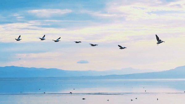 鸟儿成群结队在蓝天翱翔
