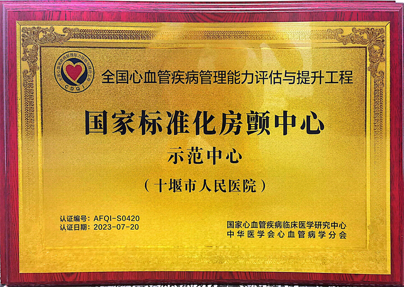 十堰市人民医院心脏中心下辖心血管内科3个病区、心胸大血管外科、心脏病重症监护室、心功能室(含心脏康复中心)、心导管室等部门。是国家住院医师规范化培训基地, 通过了中国胸痛中心、心衰中心、心血管病护理及技术培训基地的认证,目前是中国房颤中心、心脏康复中心建设单位、国家心血管病临床医学研究中心网络成员单位。十堰市人民医院心脏中心相关负责人表示,此次医院获得“CDQI国家标准化胸痛中心-示范中心”“CDQI国家标准化房颤中心-示范中心”授牌,既是行业对十堰人医前期工作的肯定和鼓励,更是对今后工作的目标和要求。十堰市人民医院心脏中心将再接再厉,以更高标准推进中心建设,更好地服务心脏疾病患者。
