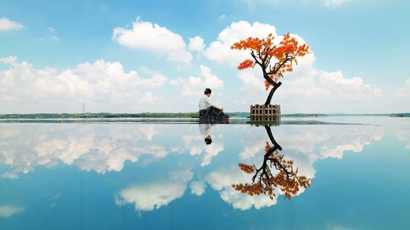 广水市明月湾景区新打造的天空之镜玻璃栈桥,水天一色,成为游客拍照打卡的新去处。 (随州日报全媒记者 徐斌摄)
