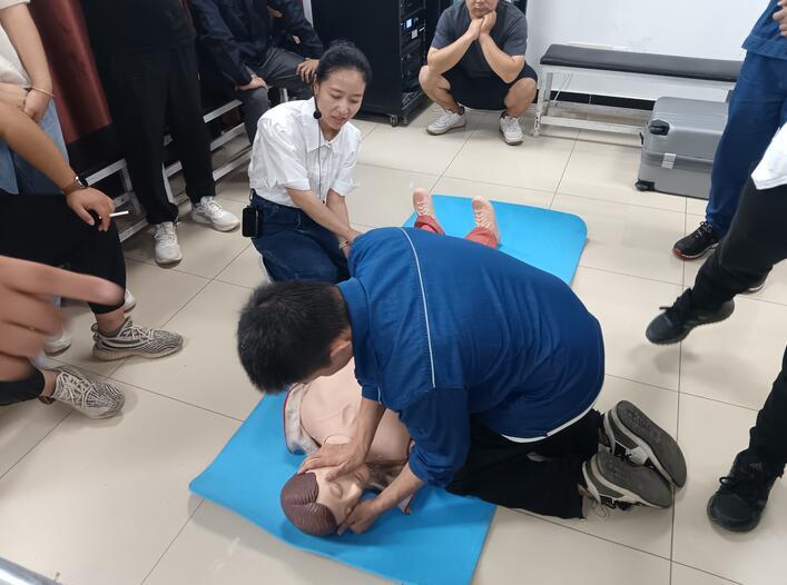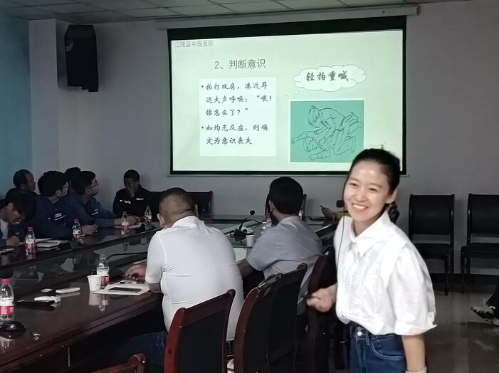 由县中医医院护师李明娟为职工们进行心肺复苏术的科普讲解,强化企业应急救护知识普及,提高企业职工对心脏骤停急救的能力,保障广大职工日常工作生命安全。