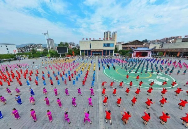 活动在开场歌舞《盛世花开》中拉开帷幕,愉悦欢快的节奏展现出农民收割场景,带着大家沉浸在热闹的丰收节氛围之中,《庆丰收·上梁》展现了美丽乡村日新月异的变化,《小康酒》展现了现在农民生活的幸福美满,以及对美好未来的期待。在摆手舞《舍日巴》的带领下,喳西泰广场、百福司镇舍米湖村分会场与安子村活动现场连线,万人齐跳摆手舞,跳出了土苗儿女丰收的喜悦,跳出了来凤县高质量发展带来的日新月异的变化,跳出了人民不断提高幸福指数。