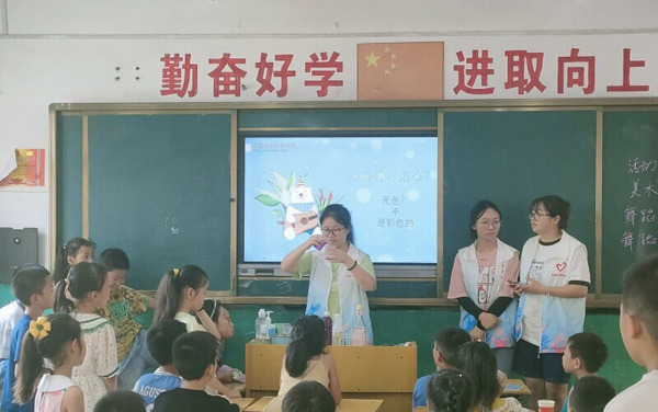 志愿者说,同学们从第一天的腼腆到后来可以与我们侃侃而谈,甚至有同学在放学时和我们说老师我明天还想来,让我们觉得十分欣慰,感觉到所有的努力都有收获,我们也期望为同学们留下一个难忘的、七彩的假期。
