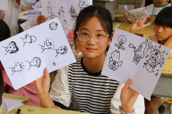 华中科技大学能源与动力工程学院“童歌童行”沙口支教队,于7月13日在荆州市沙口镇第二小学对学生开设绘画、体育和劳动课。绘画课上,志愿者以小朋友们喜爱的动画片入手,选取他们心仪的动画人物来激发孩子们的绘画兴趣。随后,志愿者以“人生不设限”为主题引导孩子们通过简单的细节改变,画出不同风格的人物,寥寥几笔却饱含深刻的教育意义。