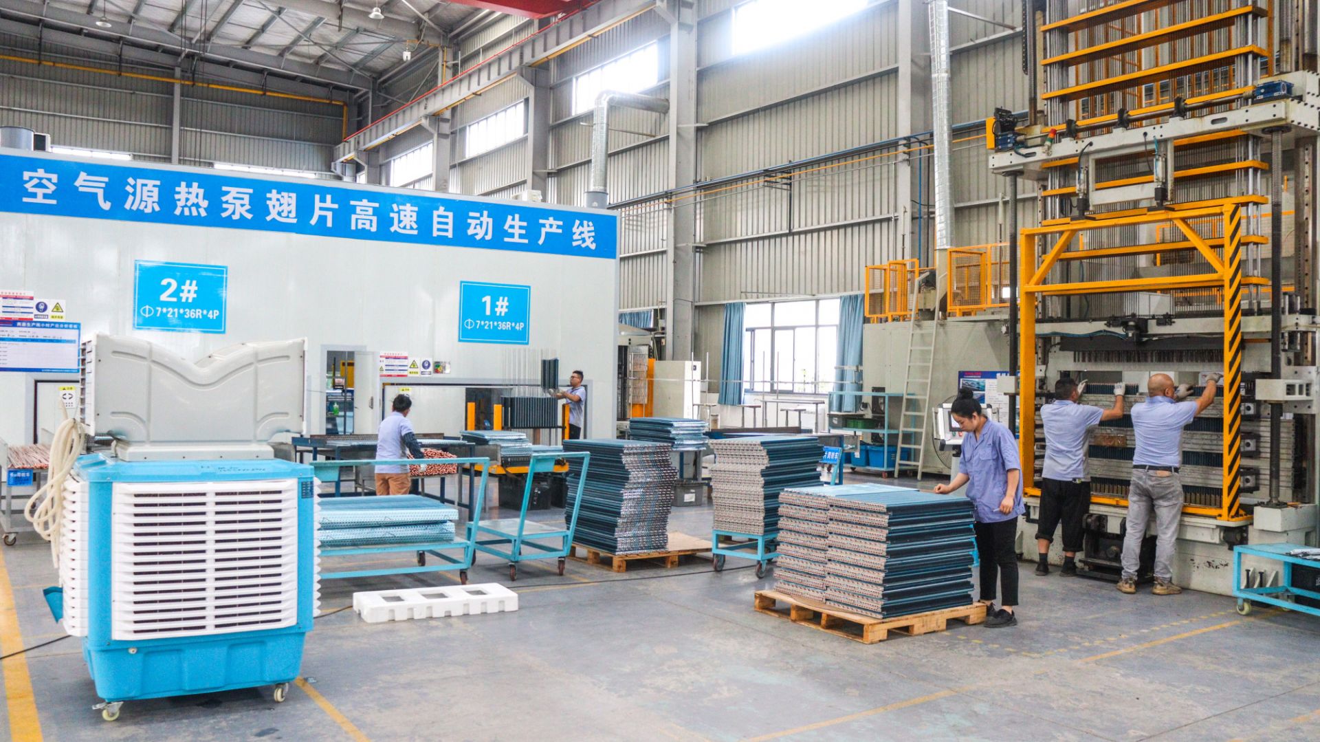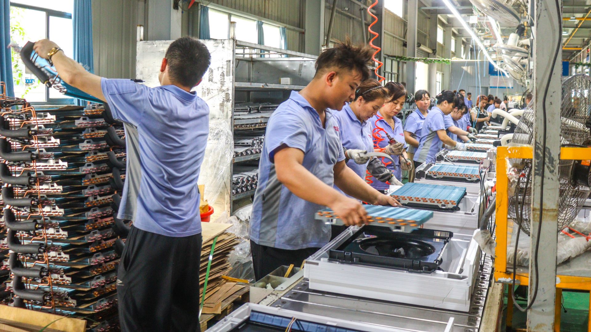 工人正在赶制商用“水空调”设备(央广网发 邓子依 摄)