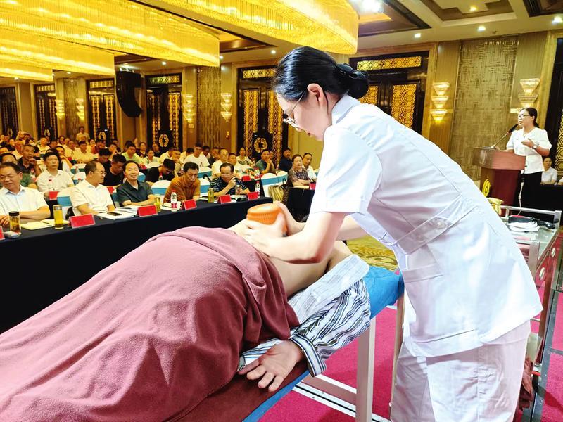 8月22日,广水市卫健局举办全市中医适宜技术推广培训班,公开课现场讲解理论知识,开展火龙罐运用实操演练活动。 (随州日报通讯员 刘小斌摄)
