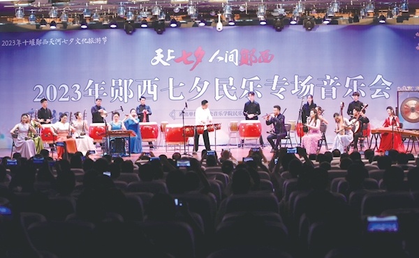 本报讯 乐动郧西,奏响七夕。昨晚,“天上七夕人间郧西”2023年郧西七夕民乐专场音乐会在郧西县天河英才高级中学举行。20位知名民乐器演奏者齐聚郧西,用音乐净化身心,用音乐奏响七夕故里,用音乐践行文化传承。