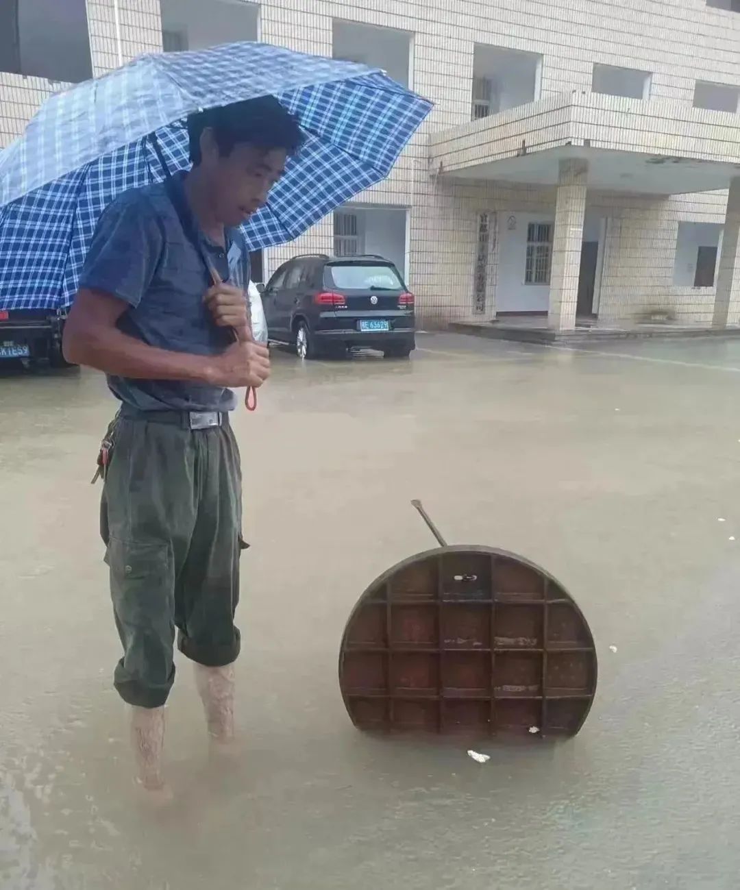 ▲ 头笔社区巡查组内情况,组织人员掀开井盖排水,并安排人员值守。