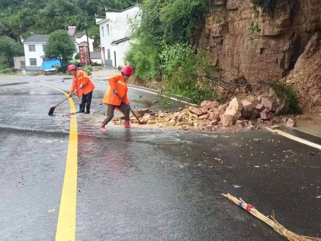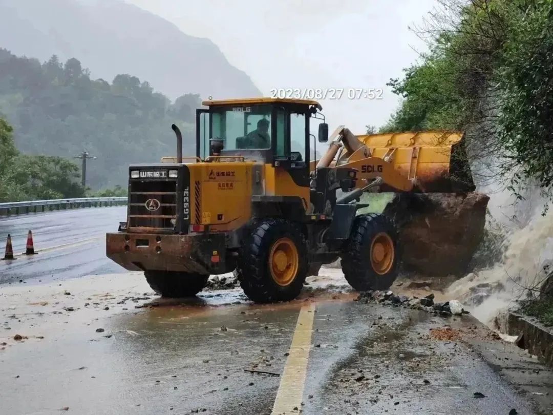 夷陵区交通运输局迅速行动、有效施策,投入养护人员、车辆、装载机,清理落石、倒伏树枝等,公路养护人员全力清除路面泥沙和小型落石及坍方,确保列养道路畅通。