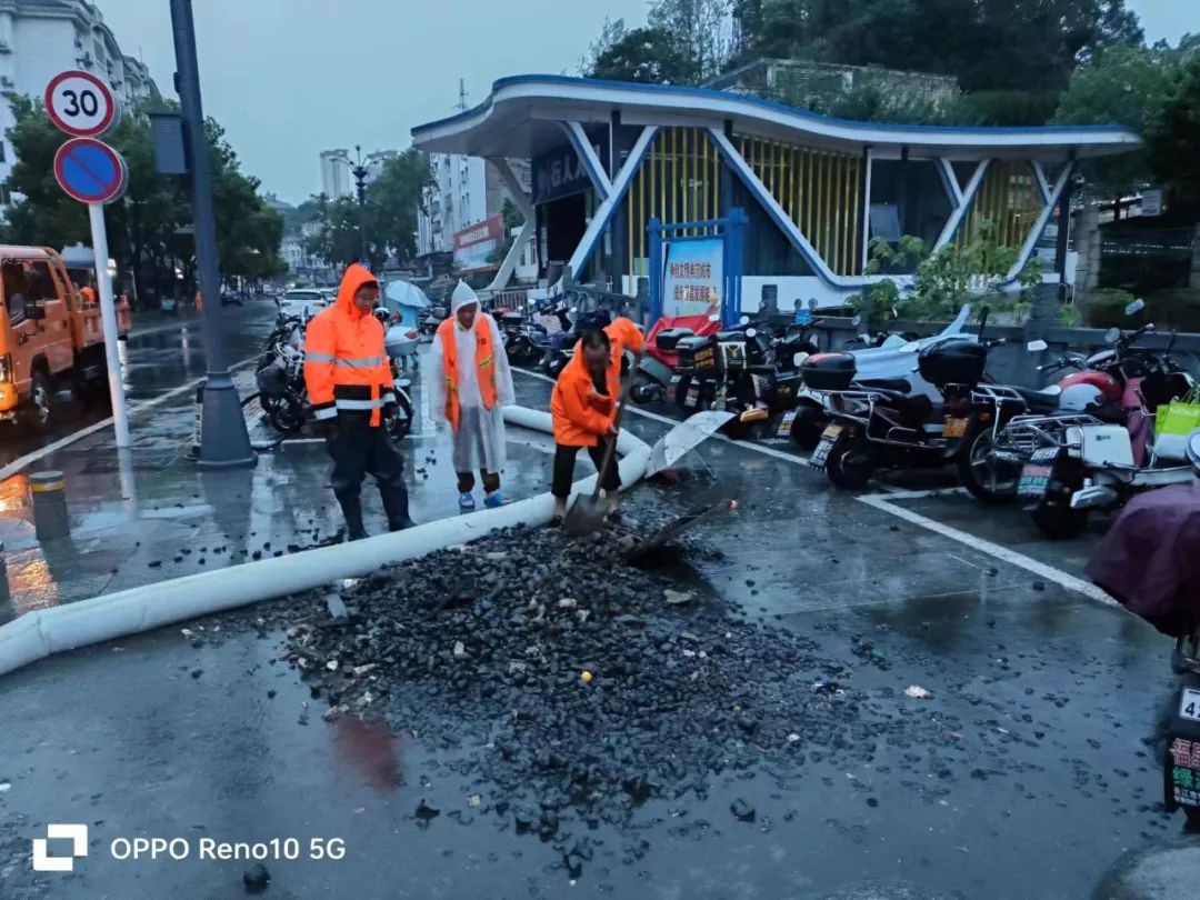 夷陵区综合行政执法局市政处第一时间启动应急预案,迅速组织排水、抢险应急队伍开展联动应急处置,全力以赴做好防汛排涝工作。