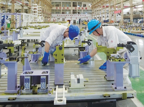 8月25日,在东风设备制造有限公司,工人正在装配焊装设备。该公司是入驻张湾区东风智能装备产业园的重点项目、全国汽车装备行业骨干企业。今年,该公司围绕实施创新驱动战略,积极推进技术升级、产品转型,全力冲刺年产值9.57亿元的目标。