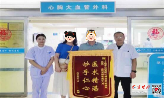 秦楚网-十堰头条讯 记者 吴忠斌 特约记者 马婷婷 报道:近日,从十堰市人民医院心胸大血管外科出院的患者何先生及其家属将一面写有“医术精湛 妙手仁心”的锦旗送到该科室医生王波手中,并与科室医护人员合影致谢,以表达对该科室精湛的医疗技术和优质服务的肯定与赞扬。