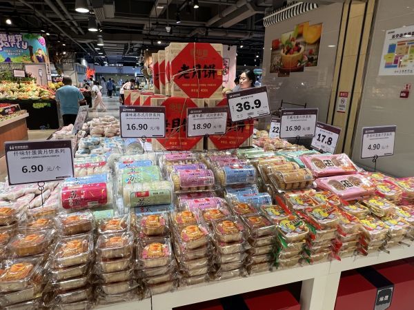昨日,记者在城区比较具有代表性的某家大型超市内看到,月饼被摆在了最显眼的超市入口处。五仁、豆沙、莲蓉、蛋黄等各种口味应有尽有,其中礼盒装月饼价格在78—298元,传统月饼一卷(5个)16.9元,散装一公斤价格根据品种不同从40元到65元不等。