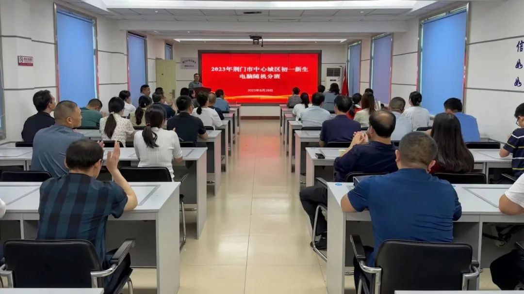 8月28日下午3点,荆门中心城区初中一年级新生电脑随机分班工作会在市电教馆举行,工作人员现场对中心城区15所初中学校一年级新生进行了电脑随机分班。会议还邀请了部分市人大代表、市纪委监委驻市教育局纪检监察组以及家长代表和新闻媒体记者参加。
