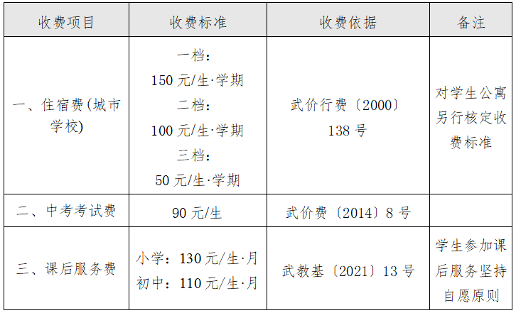 2023年秋季武汉市各级各类学校收费项目标准