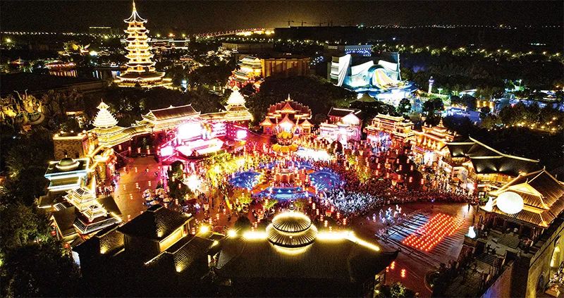 图为荆州方特“千灯明月宴”主题活动俯瞰图,活动中的孔明灯无人机秀、汉服快闪舞蹈等演出点亮夜空,让游客沉浸式感受传统文化的魅力。 荆州市委宣传部供图 张梦瑶/摄充满文化气息的夏日荆州,夜生活格外丰富多彩、富有情调。荆州已形成多个夜间消费区,荆州古城光影秀、荆州方特无人机表演等丰富多彩的文化生活,让荆楚文化闪耀夜空。近年来,荆州对历史文化街区老旧建筑进行修复改造,打造出“夜经济”的新地标——沙市洋码头。有着悠久历史的沙市码头,现已建设成为集文化展示、创意工坊、旅游休闲、滨江观光、运动健身、双创空间等多种业态为一体的长江商埠文化创意产业园区。