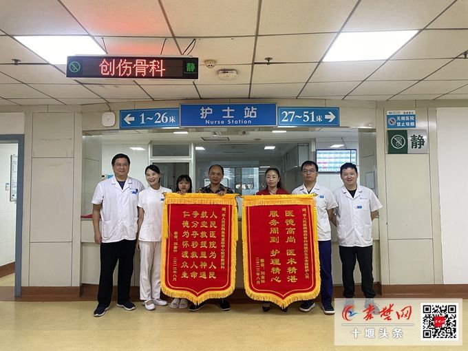秦楚网-十堰头条讯 记者 吴忠斌 特约记者 马婷婷 报道:8月31日一大早,十堰市人民医院航空救援科和创伤骨科分别收到来自患者家属送来的一份暖心礼物。竹溪县高处坠落男孩的家属将两面分别印着“人民医院为人民 航空救援显神通 争分夺秒救人命 仁德为怀渡众生”“医德高尚 医术精湛 服务周到 护理精心”的锦旗送到医护人员手中,表达患者对航空救援科和创伤骨科优质的诊疗技术和医护热情的服务高度肯定。