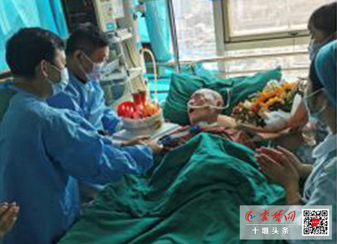 秦楚网-十堰头条讯 记者 吴忠斌 特约记者 马婷婷 报道:“祝你生日快乐,祝你生日快乐。”8月31日上午,十堰市人民医院呼吸与危重症医学中心重症监护室的医护人员唱着生日快乐歌,捧着生日蛋糕和鲜花,走到9床患者欧阳爷爷床前,为他庆祝90岁生日,并送上真挚的祝福。