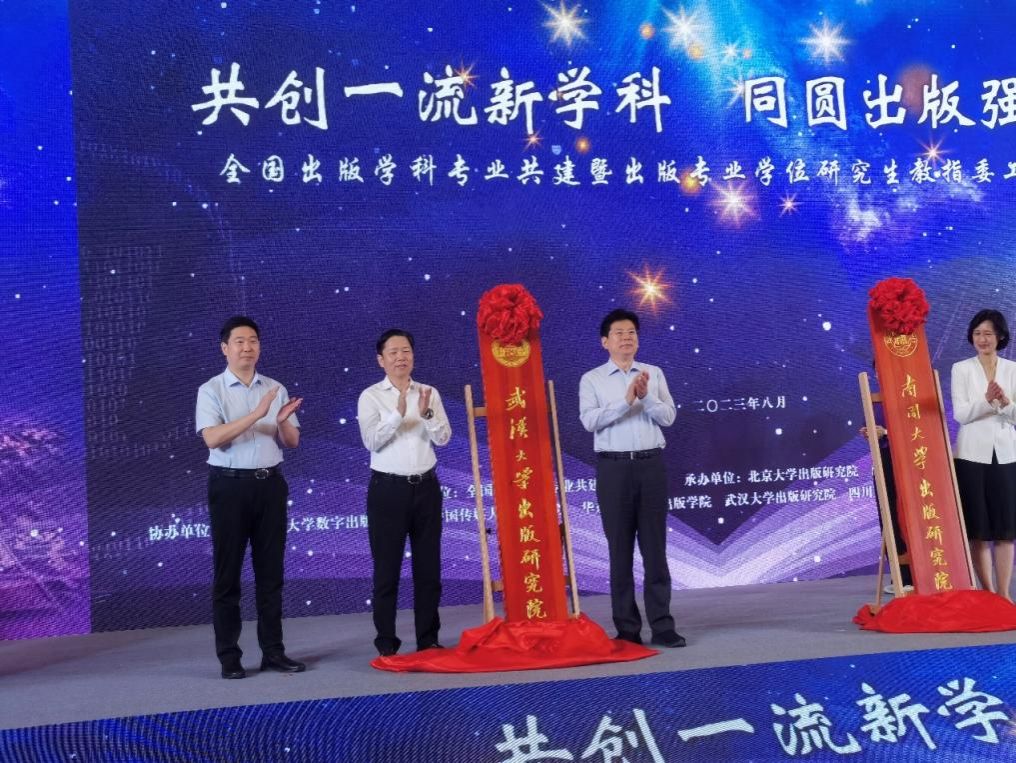 新闻网讯(通讯员周娴)8月31日,全国出版学科专业共建暨出版专业学位研究生教学指导委员会工作会在天津召开。会上,中央宣传部副部长张建春为武汉大学出版研究院揭牌。国务院学位办副主任、教育部学位管理与研究生教育司副司长徐维清,湖北省委宣传部常务副部长邓务贵,武汉大学党委副书记沈壮海等出席会议并见证揭牌仪式。