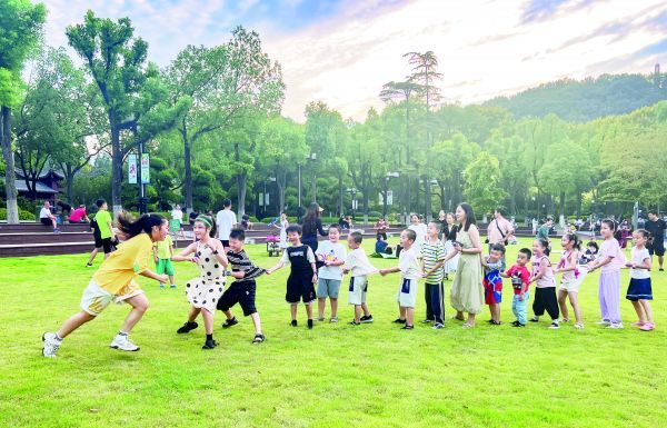 9月2日晚,荆门龙泉公园东广场大草坪上不少市民或嬉戏玩耍,或休闲游憩,或帐篷露营,或运动健身,尽享共享绿地带来的美好生活。除了东广场大草坪,该园还开放了童乐园(原荆门动物园)和艺林园,共享草坪总面积约5000平方米。其中,东广场大草坪开放时间为双休日8时30分至20时30分,童乐园、艺林园,夏秋季开放时间为每天6时至22时。(记者 郑波 通讯员 吴曾 摄)