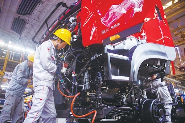 9月6日,在东风商用车有限公司车辆工厂,工人在进行驾驶室前围装配作业。近年来,湖北省十堰市持续推动汽车产业转型升级,向高端化、轻量化、电动化、数字化、智能化方向发展,并创新供应链金融服务模式,构建现代化贸易服务体系,着力打造零部件全配套、电动车强链条、商用车全系列、专用车多品种的下一代汽车产业生态圈,推进汽车产业高质量发展。新华社记者伍志尊摄