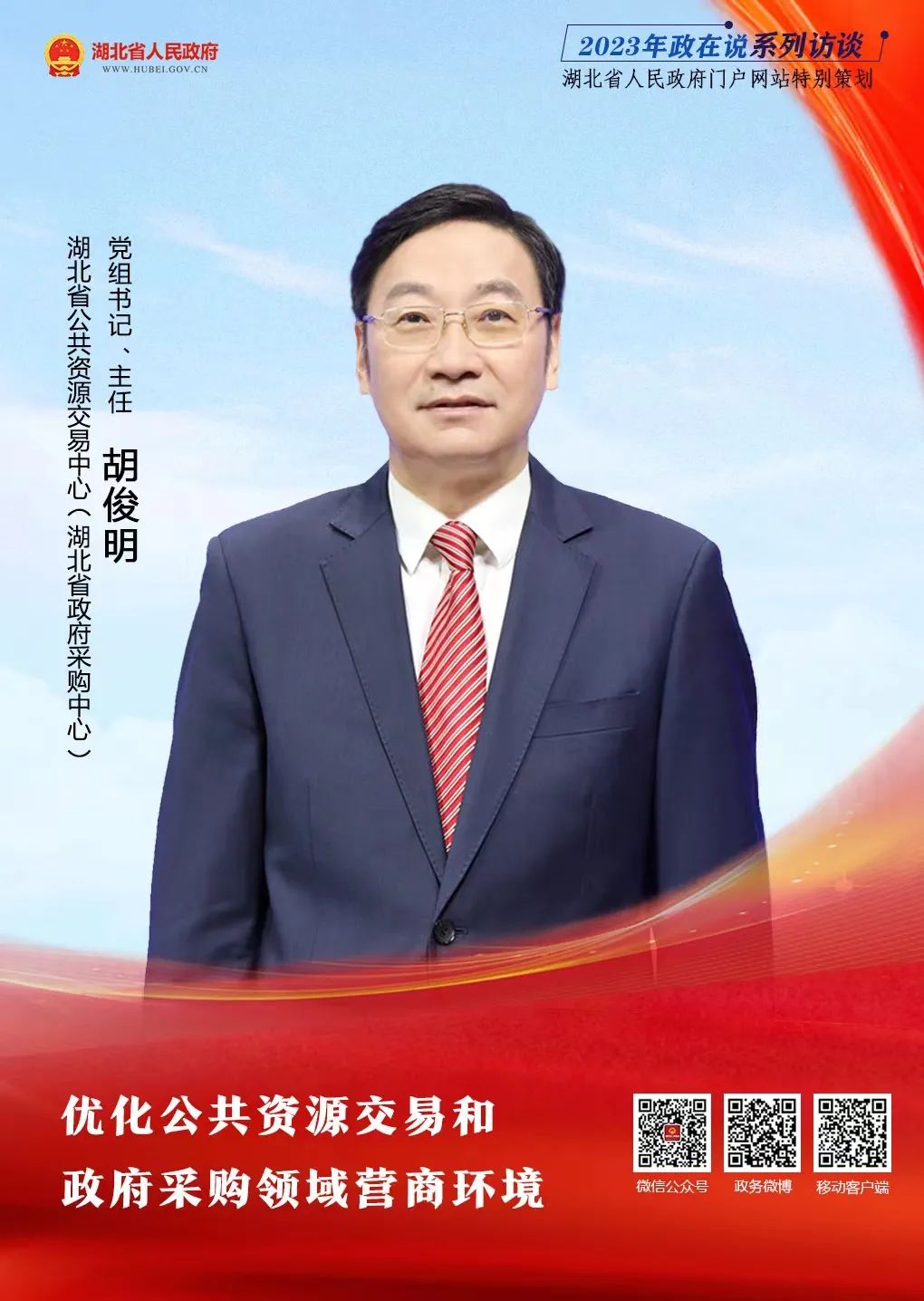 9月5日,湖北省公共资源交易中心(湖北省政府采购中心)党组书记、主任胡俊明将做客湖北省人民政府门户网站,开启“政在说•建设先行区”系列访谈首场,就优化公共资源交易和政府采购领域营商环境话题和网友交流。