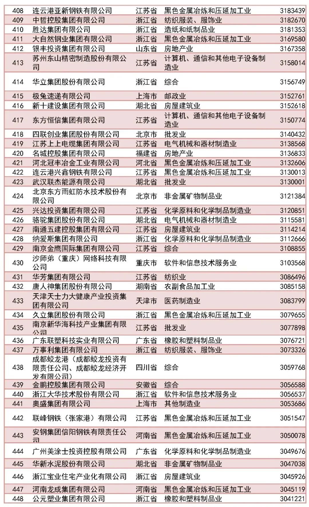 9月12日,全国工商联发布2023中国民营企业500强榜单。