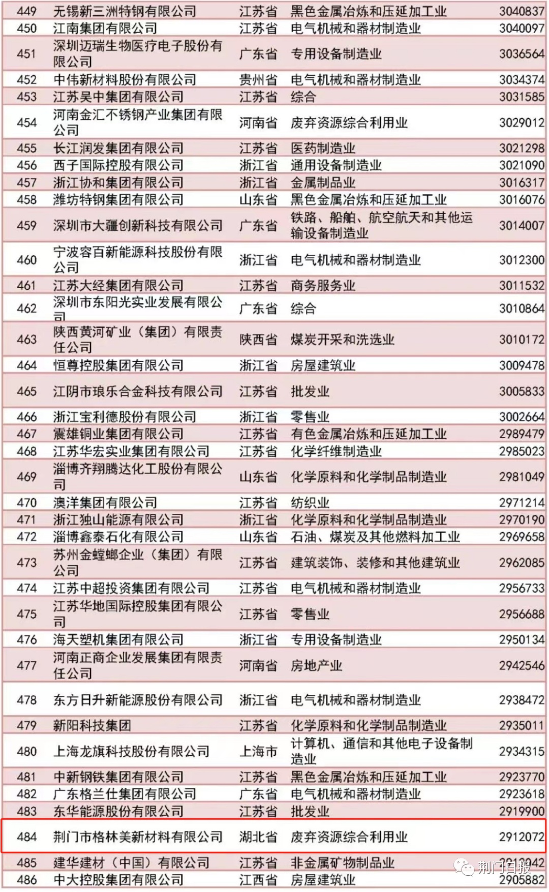 湖北有16家民营企业入围民营企业500强,荆门有2家。