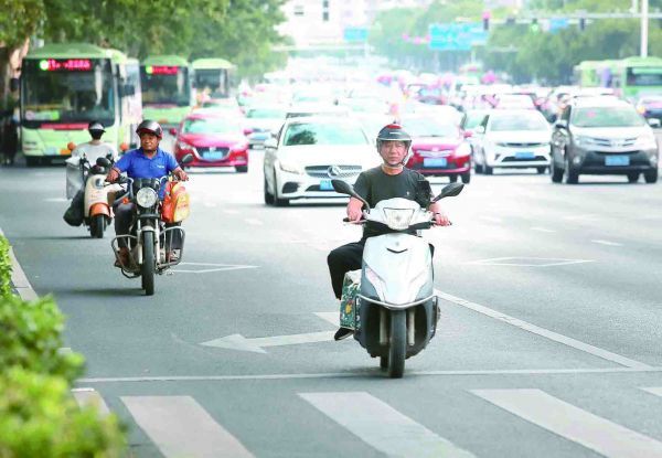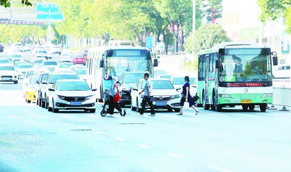 文明劝导员在道路口维护交通秩序。郑波 摄