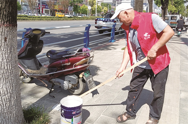 掇刀区掇刀石街道各社区志愿者、“红管家”针对车辆无序停放问题,联合城管部门在白云大道、深圳大道等公共区域增划、补划停车位,引导居民文明规范停车。图为军马场社区“红管家”增划车位线。郑姣 陈蒙琳 摄