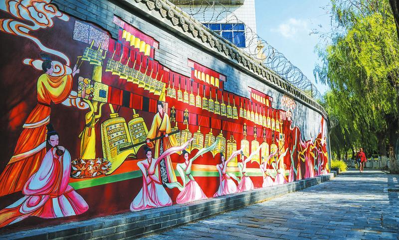 近年来,我市注重在“城市家具”和城区公共空间等点位,通过人工彩绘等方式,大力宣扬随州“炎帝神农故里、编钟古乐之乡”两张历史文化名片,进一步提升随州国家历史文化名城美誉度。图为随州城区西护城河神农公园地段“编钟乐舞”墙绘。(随州日报通讯员 聂少峰摄)