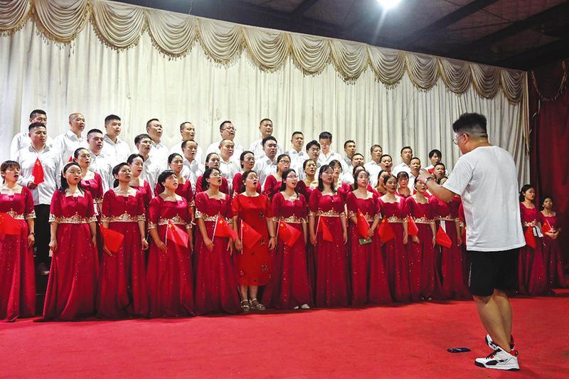 9月19日晚,随县均川镇组织庆祝新中国成立74周年合唱比赛排练活动。来自政府机关、镇直部门、乡村社区的60余名党员干部用真挚的情感、嘹亮的歌声,祝福伟大的祖国屹立东方、繁荣昌盛。 (随州日报全媒记者李文军、通讯员汪文平摄)
