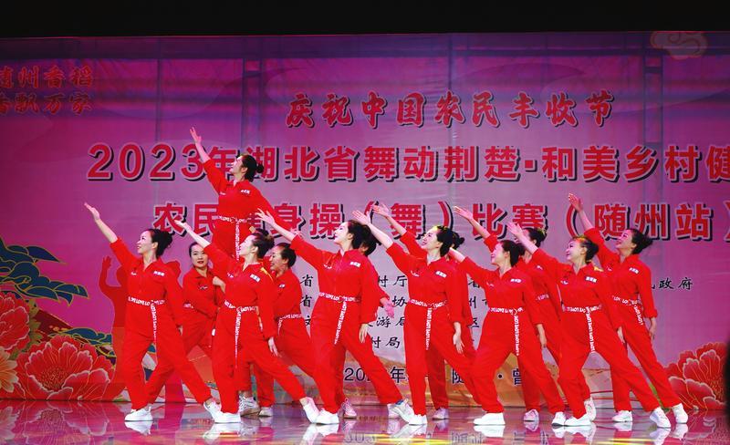 2023年湖北省舞动荆楚·和美乡村健身行农民健身操(舞)比赛(随州站)现场(随州日报见习记者 钟金辉摄)