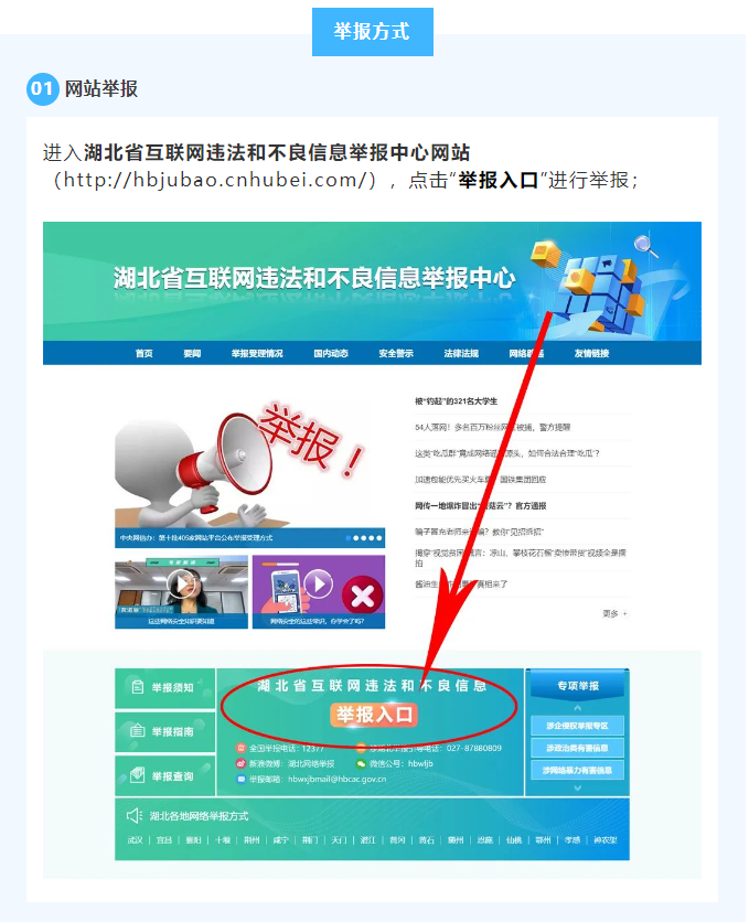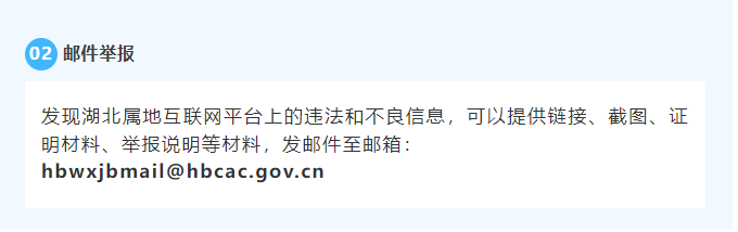 二、新的举报电话号码变更为027-87880809,举报电话响应时间为工作日上午9:00-12:00,下午2:30-5:30。其他时段,欢迎通过“湖北省互联网违法和不良信息举报中心”网页举报。