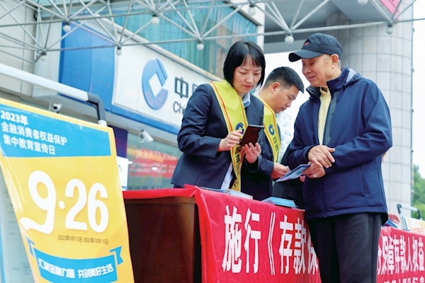 9月26日,我市金融机构开展2023年“金融消费者权益保护教育宣传月”活动。活动现场,工作人员向市民发放宣传手册,介绍“金融消费者权益保护”“防范和处置非法集资”“理性进行金融投资消费”等方面金融知识,引导市民了解金融政策,防范金融诈骗。记者全正摄