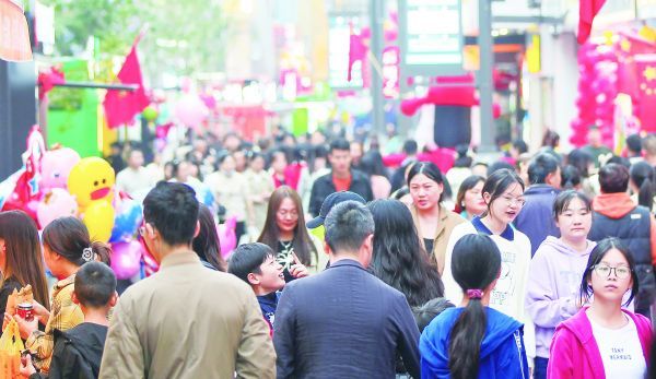 图为10月4日,荆门中天街上人流如织。