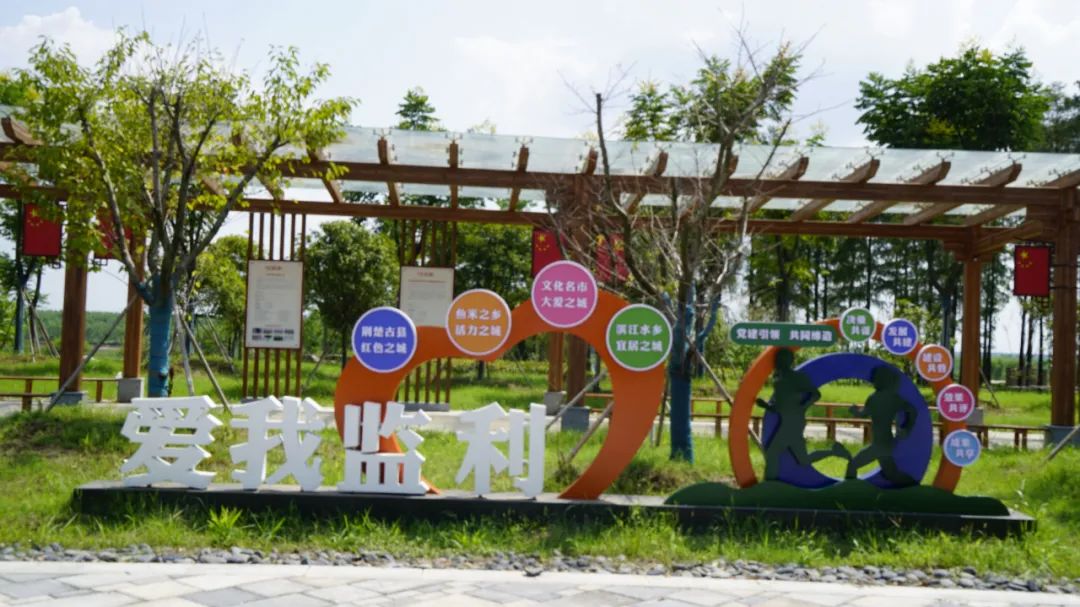红心筑梦由“知我监利”“爱我监利”“兴我监利”“富我监利”四组文化小品组成。
