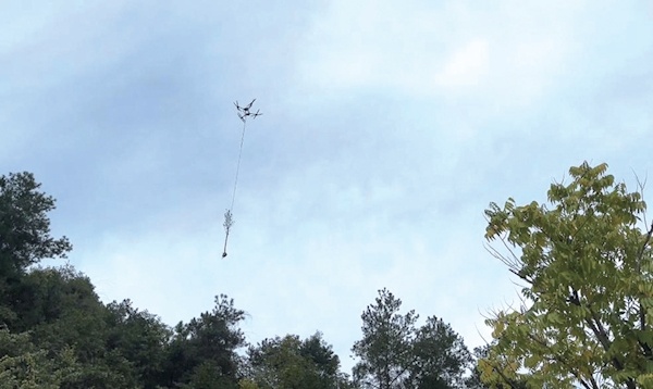 “采用无人机吊装既节约成本、节省人力,又能够有效规避崎岖路径、陡峭山体等不利地形,确保工人造林安全。”市林业局现场负责人告诉记者,无人机“飞天种树”在省内尚属首次,既保护了森林生态,还大幅提高了植树效率。