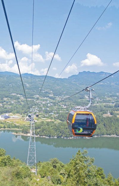 恩施土家族苗族自治州红花峰林景区,跨江索道稳定运行。