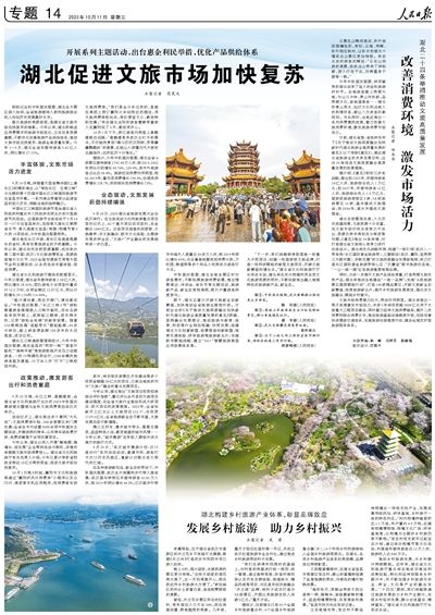今日(10月11日),《人民日报》刊发文章《开展系列主题活动,出台惠企利民举措,优化产品供给体系 湖北促进文旅市场加快复苏》,聚焦湖北多举措推动文旅市场加快复苏、旅游业高质量发展。