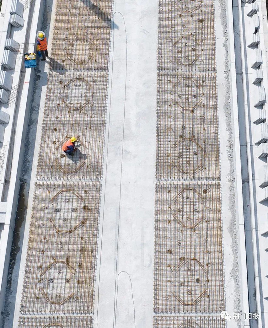 自今年4月以来,荆荆铁路全线转入桥面系统线上施工。无砟轨道的施工也意味着荆荆铁路建设已进入冲刺阶段,为明年按期开通奠定坚实的基础。目前,荆荆铁路1标段的桩基、承台、墩身及标段内的连续梁、转体梁已经全部完成,桥梁的制梁、架梁工作也全部完工,目前项目全体员工全身心投入在无砟轨道施工中,项目整体推进平稳有序。