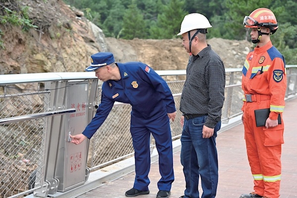 十堰主城区健康游步道项目开放在即。10月10日,市消防救援支队对健康游步道一期一标段消防设施开展专项检查,确保游步道消防安全不出纰漏。检查中,消防监督人员对现场消防器材的外观标识、结构部件、材料、性能参数是否符合要求进行核实,开展消防知识宣传,指导步道工作人员对消防设施做好检验、维护工作。记者全正通讯员袁占彪摄