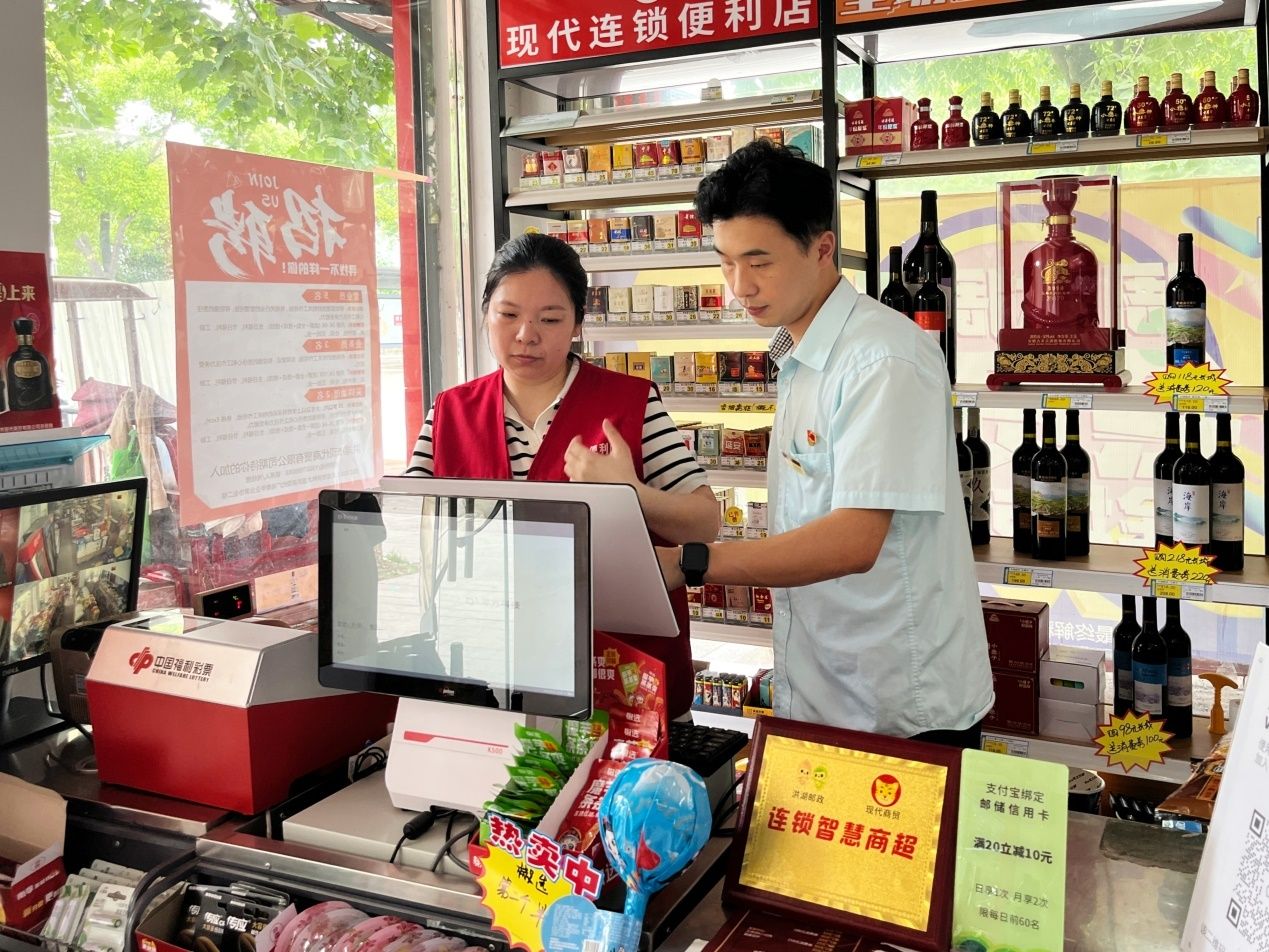 为推进智慧场景建设,切实方便居民生活,荆州市邮政分公司主动融入社区,了解居民普遍反映的超市购物排队慢,小区老旧、村组网购取包裹不方便等问题,迅速对接现代商贸,梳理智慧收银、财务对账、客户引流等方面的服务需求,并特色性地加入了邮政自提点,为客户提供邮件自提与寄递服务,形成切实有用的现代商贸“智慧商超”场景升级方案。