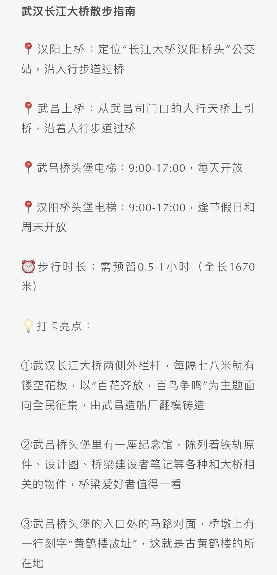 武昌的桥头连着黄鹤楼、户部巷,汉阳的桥头牵着龟山风景区,站在桥上,才懂“唯见长江天际流”是何等壮美。