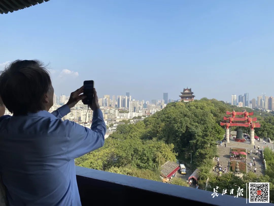 从洛杉矶来的美籍华人游客Tiffany游玩黄鹤楼后感叹:“武汉是一座花园城市,东湖是市中心的璀璨明珠,令人感觉非常舒服。”