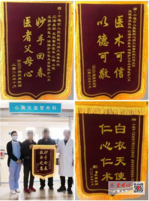 秦楚网-十堰头条讯 记者 吴忠斌 特约记者 马婷婷 报道:近日,十堰市人民医院心胸大血管外科收到病人赠送的多面锦旗,字里行间都 是对医护人员高尚医德、精湛技术和优质服务的认可和褒扬。