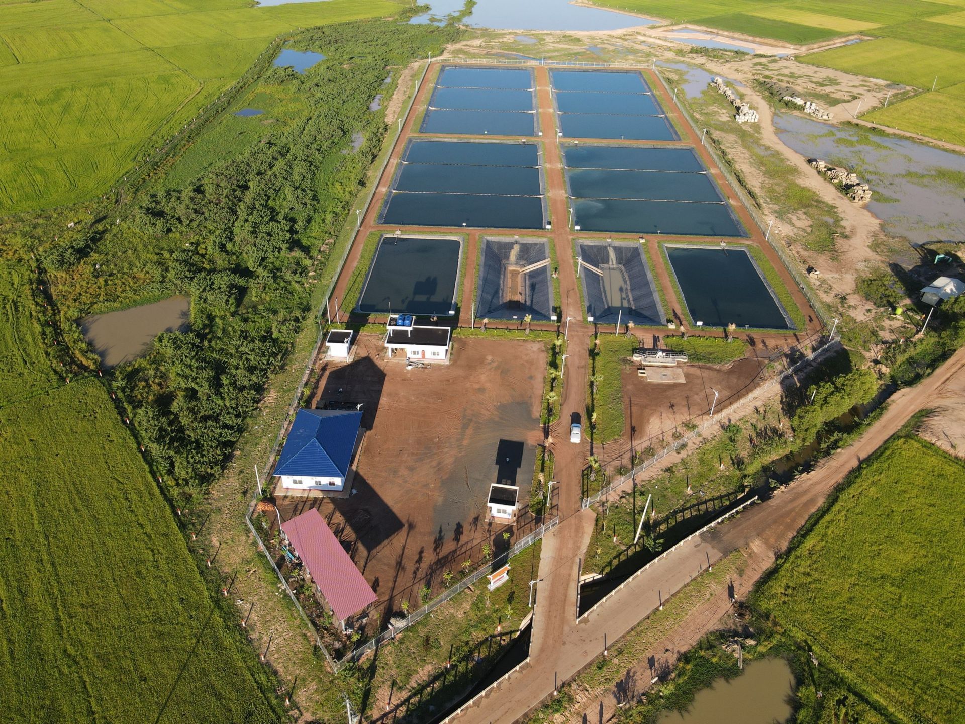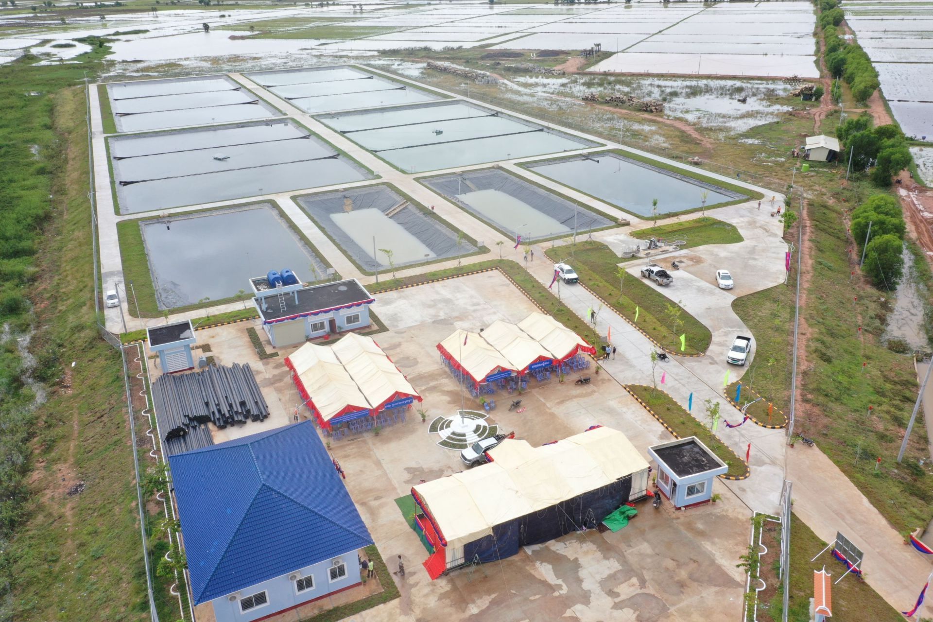 中国一冶柬埔寨斯登森污水排水工程终端——污水处理站。