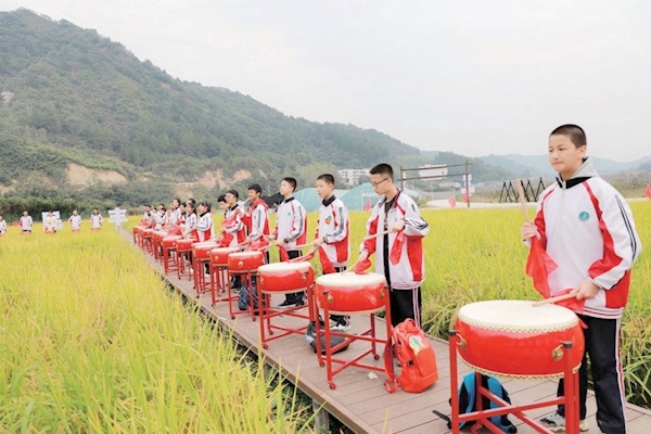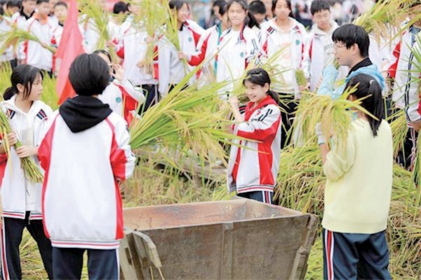 10月12日,一场别开生面的劳动实践活动在张湾区黄龙镇回龙村田间火热进行。来自东风五中的学生积极参与收割水稻的劳作,学习劳动技能,体验收获快乐。学生们在老师的指导下,左手握稻穗,右手抓镰刀,小心翼翼地割倒稻穗,将割下的稻谷捆成一束,再用力摔打进行脱粒。回龙村的稻田变成了劳动技能比拼的赛场。通讯员 王萌萌/摄