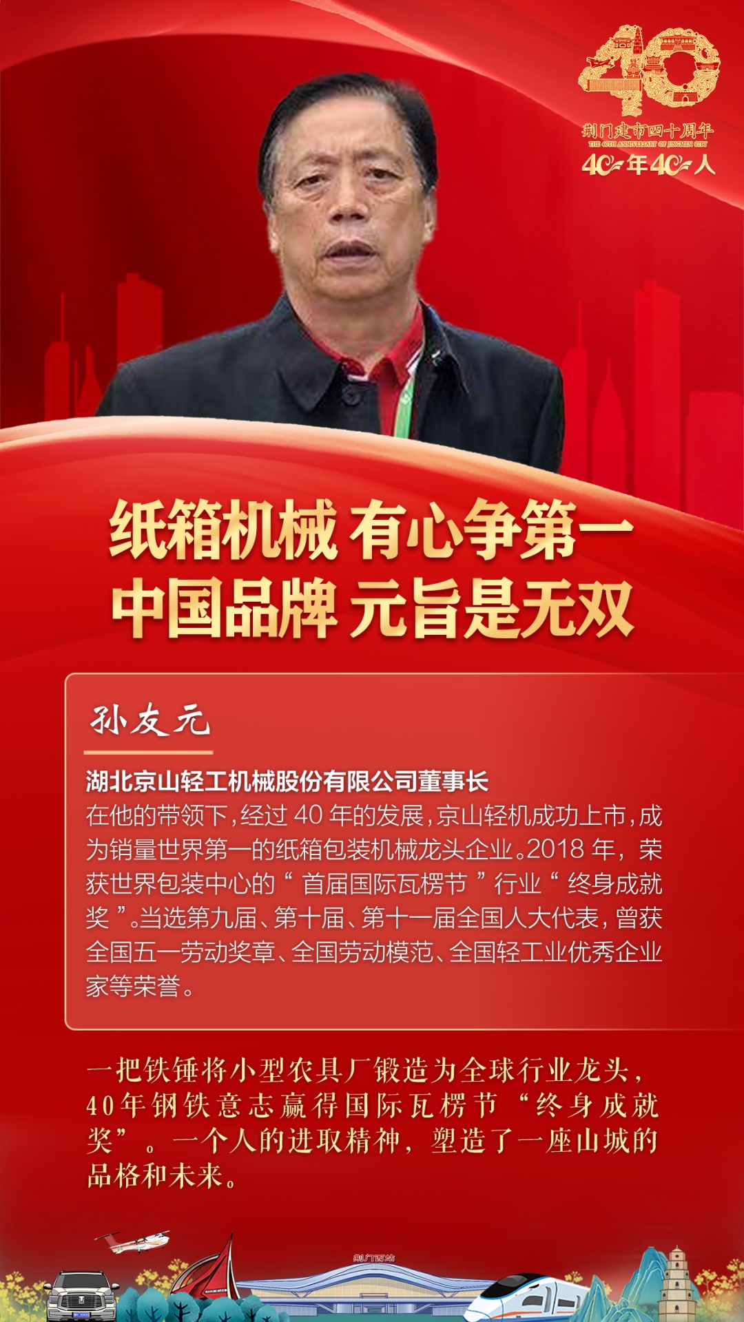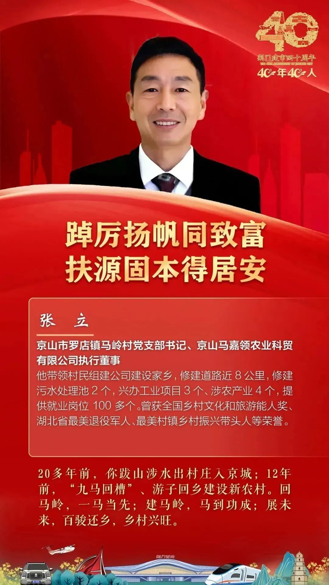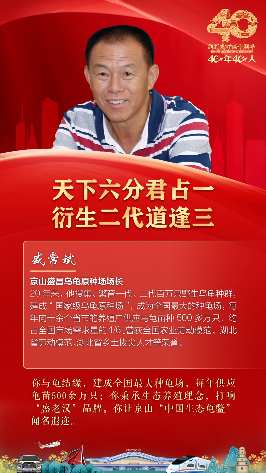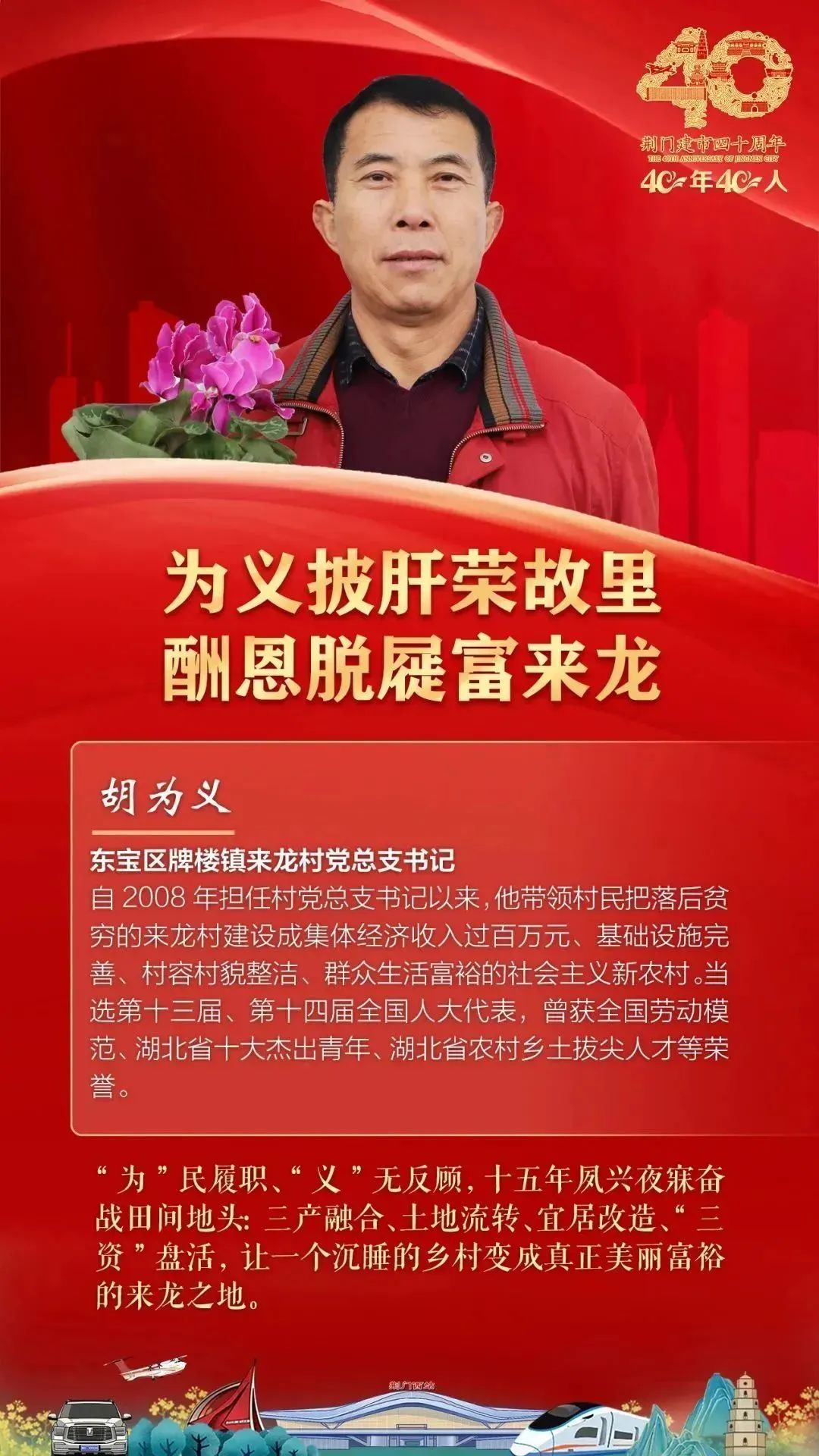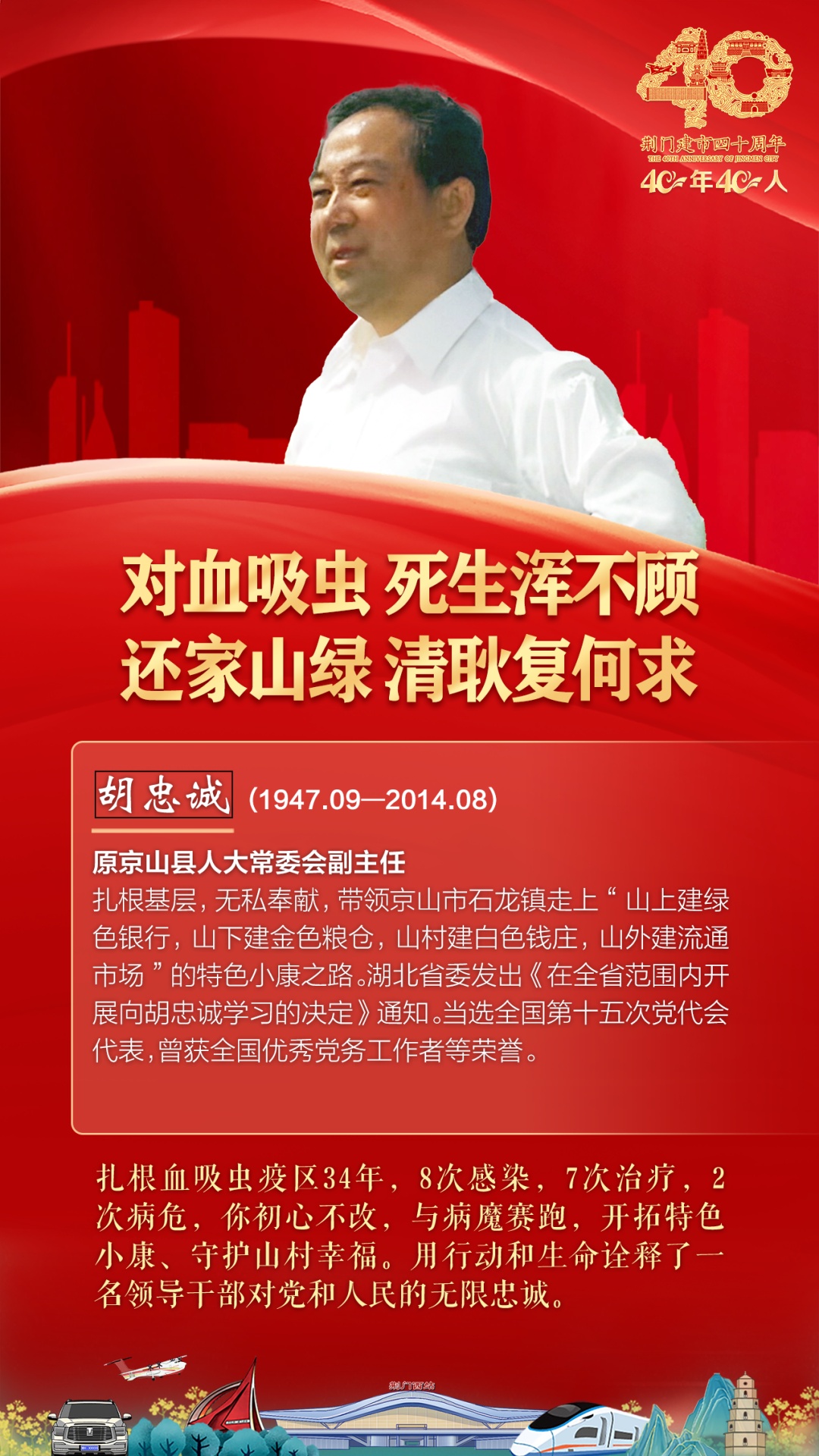 此次发布的荆门“40年40人”中,既有经济发展的领军人物,也有科教文卫的杰出人物,还有其他领域的代表人物,他们是荆门经济社会跨越发展的功臣和荆门人民的楷模。(记者 邓显军 戴永君)